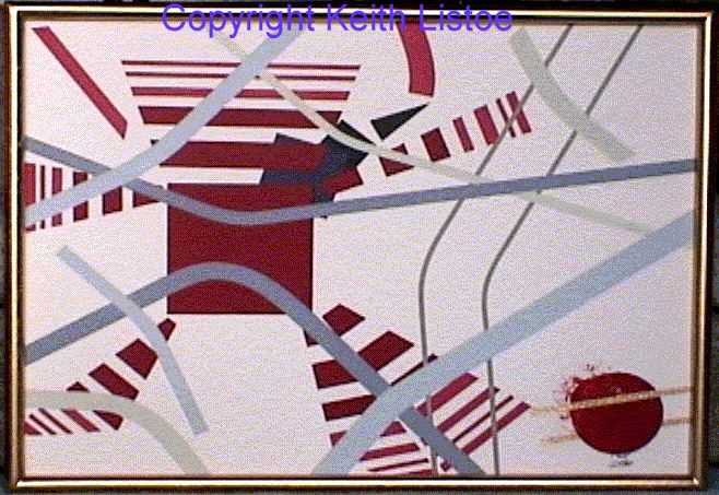 My Mom requested a Picture Painted for Her with the following criteria: That it displayed Depth, the colors as seen in the Painting, the dimensions 33x25 of the Painting. I decided on the idea that a great force was pulling everything into it and that the frame for her picture would be unique so I created the frame out of dowellings and Painted them Gold.